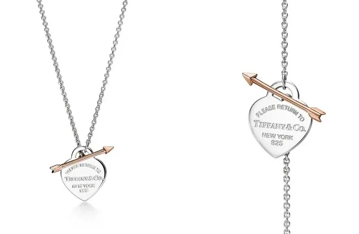 티파니 앤 코의 아이코닉한 리턴 투 티파니™ 컬렉션의 이전 모델과 마찬가지로 러브스트럭 하트 펜던트는 아이코닉한 하트 펜던트와 완벽한 조화를 이루는 18K 로즈 골드 화살 모양 클립이 특징이에요.