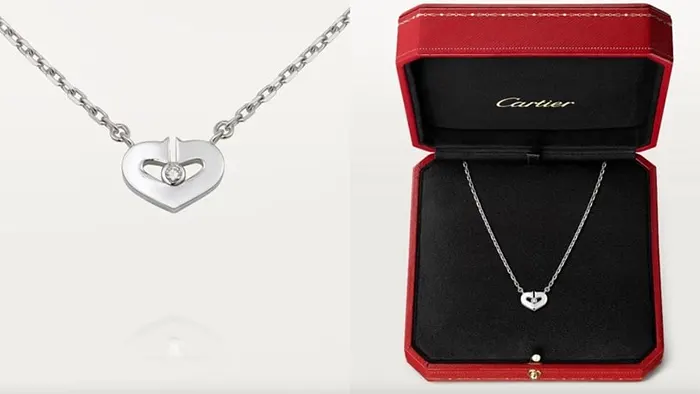 이 까르띠에 목걸이는 속이 비어있는 하트 모양의 0.01 캐럿 라운드 브릴리언트 다이아몬드가 세팅되어 있습니다. 유니섹스 디자인의 매력은 원래 하트 패턴의 달콤함을 중화시켜 커플 목걸이는 물론 소년의 착용에도 적합합니다.