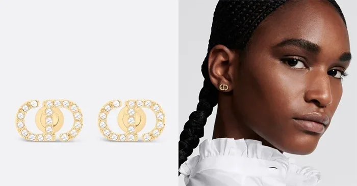 디올 페티 CD 미니 이어스터드는 고급스러운 분위기가 물씬 풍기는 편이야. 금색 마감의 CD 로고에 은색톤 크리스탈이 밀착 세팅되어 있어서, 귀에 달면 반짝이는 눈부신 빛을 뿜어내지만, 너무 화려하지만 않게 하는 그런 감각적인 디자인이야. 진열대를 장식하는 오랜 베스트셀러 제품이니까!